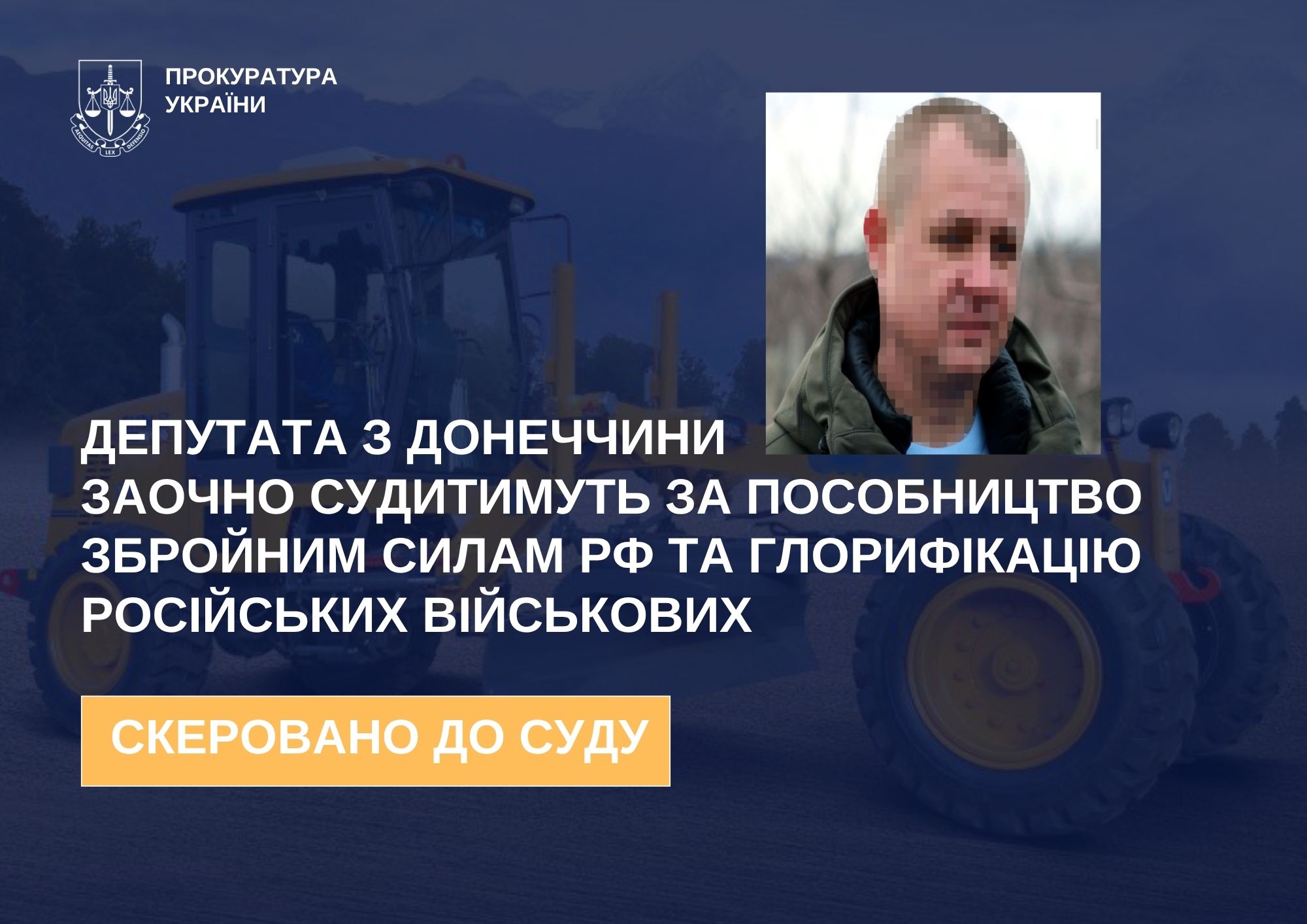 Депутата з Донеччини заочно судитимуть за пособництво збройним формуванням рф та глорифікацію російських військових