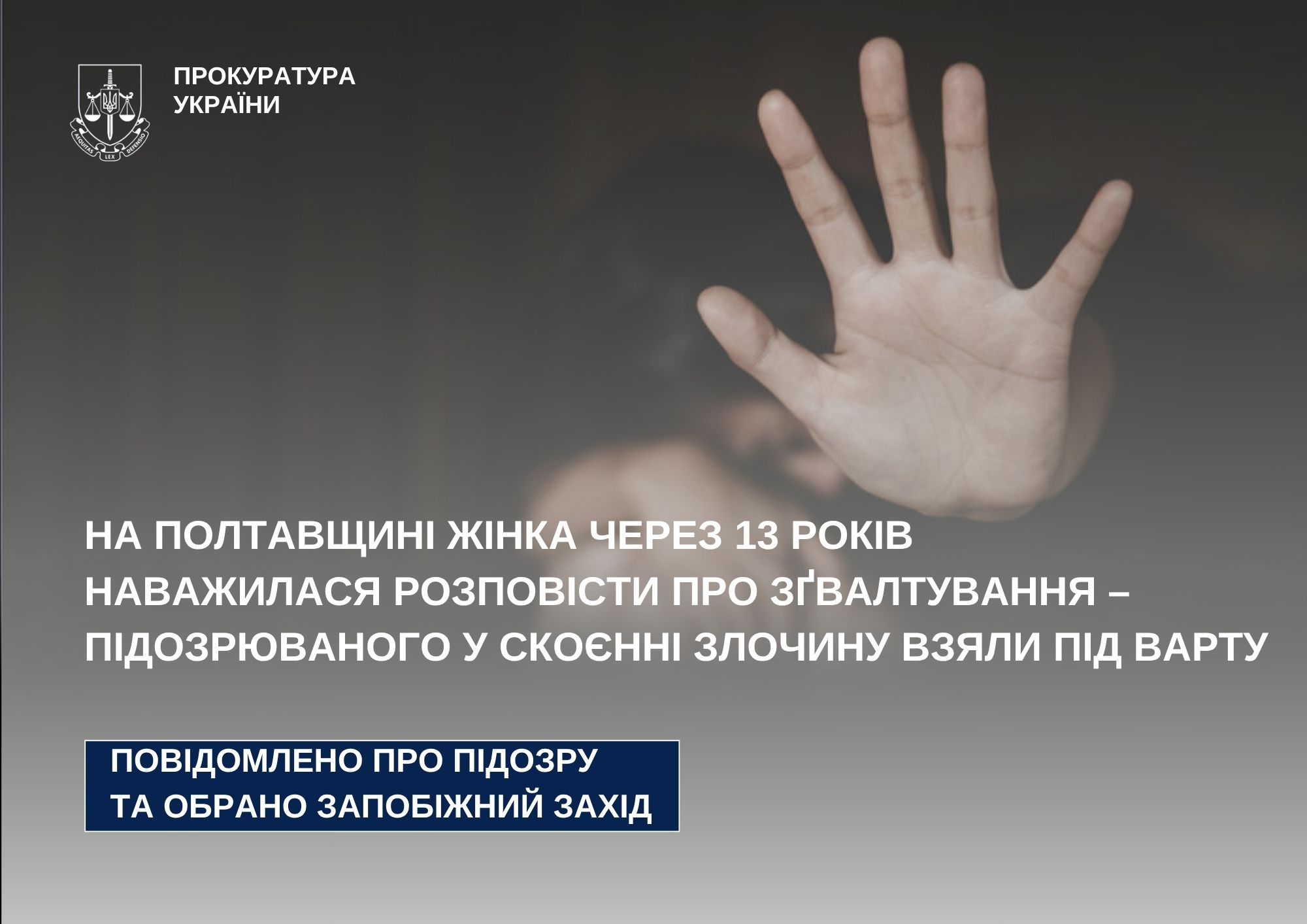 На Полтавщині жінка через 13 років наважилася розповісти про зґвалтування – підозрюваного у скоєнні злочину взяли під варту