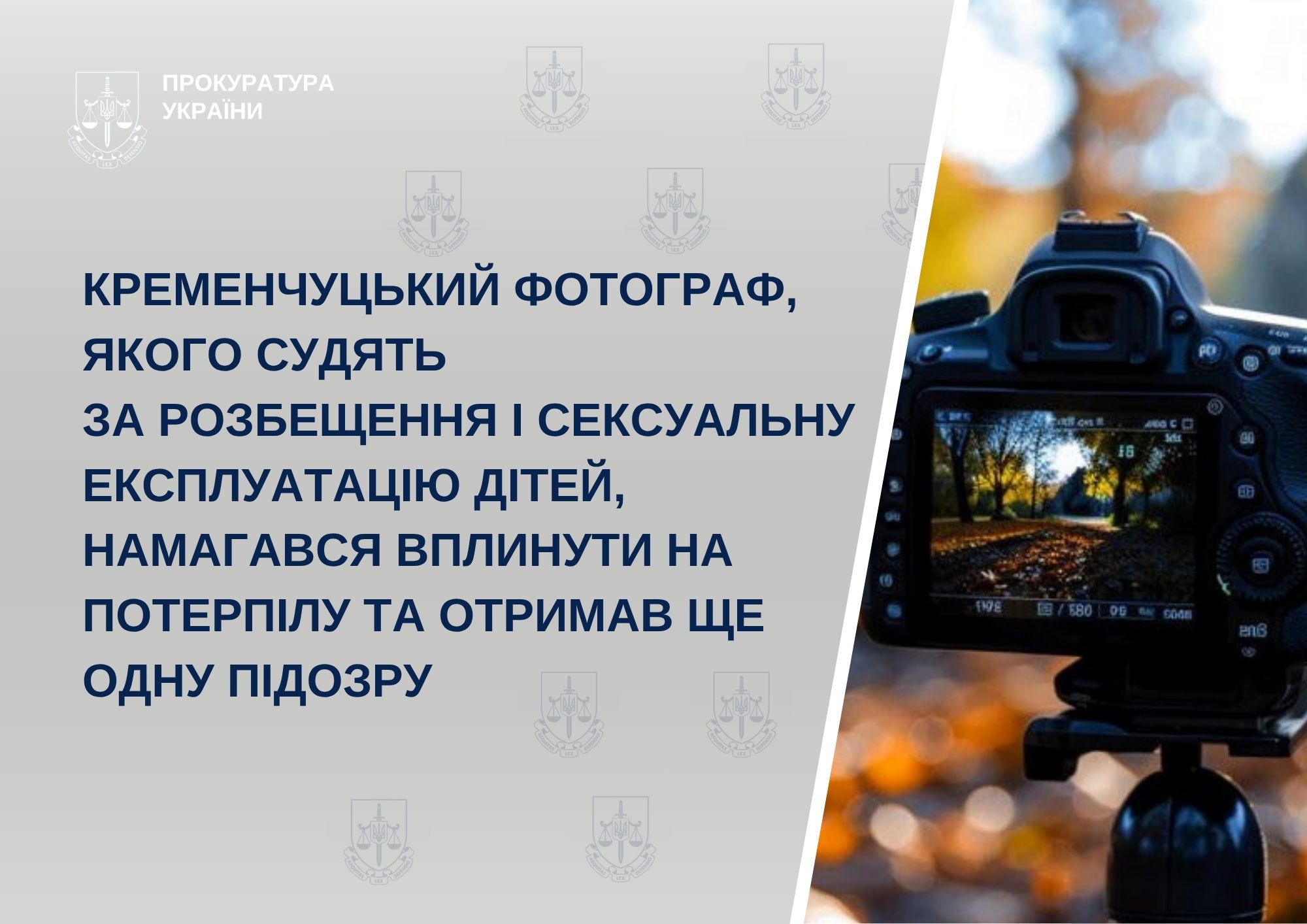 Кременчуцький фотограф, якого судять за розбещення і сексуальну експлуатацію дітей, намагався вплинути на потерпілу та отримав ще одну підозру